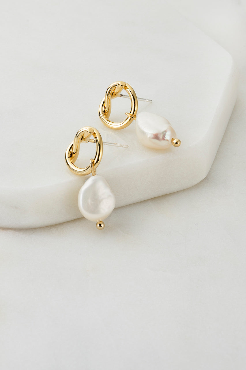 These earrings feature a freshwater pearl delicately hanging from a meticulously crafted gold knot, elegantly attached to a stylish stud. The intricate gold knot adds a touch of sophistication and refinement to the overall design. Whether you're attending a special event or simply enhancing your everyday style, the Alice Earring is the perfect choice. With its combination of elegance and versatility, this exquisite piece effortlessly elevates any outfit. Upgrade your jewellery collection with the Alice Earring and let its mesmerising pearl and exquisite craftsmanship showcase your impeccable sense of fashion and refined taste.
