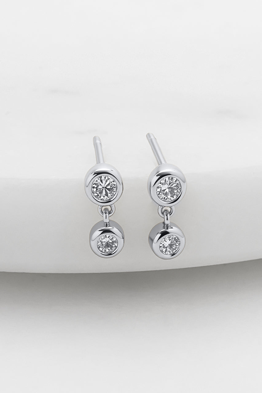 The Amy Earring features a double bezel-set crystal design that shines from every angle. Crafted in polished gold, its delicate drop style offers just the right amount of sparkle while staying lightweight and versatile. Wear them daily for understated elegance or pair with studs and hoops for a layered statement. Designed for modern women who want effortless style, every day.