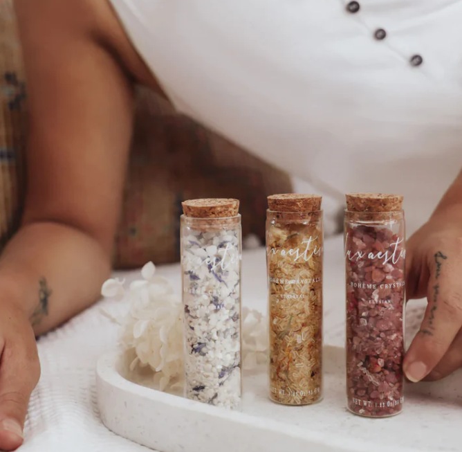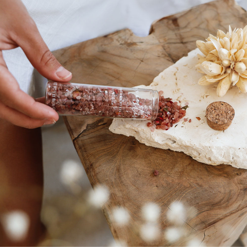Indulge in a luxurious spa experience right at home with our Bambino Boheme Bath Crystals. Perfectly sized for gifting, our Bambino Bath Crystals have been curated to offer a luxurious spa experience at home. Each vial contains a unique blend of healing salts, organic flowers, and pure essential oils crafted to relax the body and senses.