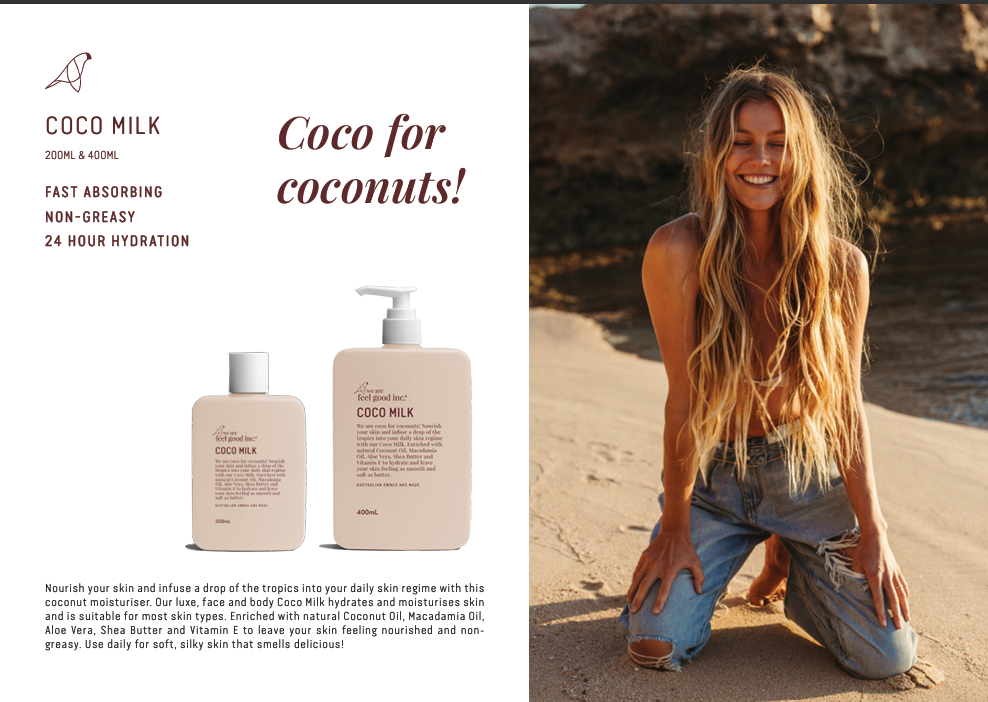 Nourish your skin and infuse a drop of the tropics into your daily skin regime with this coconut moisturiser. WAFG luxe Coco Milk hydrates and moisturises skin and is suitable for most skin types. Enriched with natural Coconut Oil, Macadamia Oil, Aloe Vera, Shea Butter and Vitamin E to leave your skin feeling nourished and non-greasy. Use daily for soft, silky skin that smells delicious!