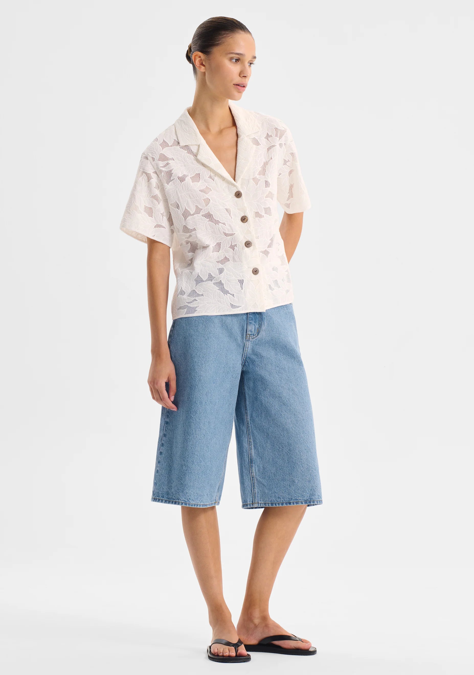 Crafted from mid-weight cotton denim, the Hendrix Bermuda Short features a mid rise waist and traditional five-pocket styling. Designed in a relaxed fit with a below the knee length for an easy, timeless look.