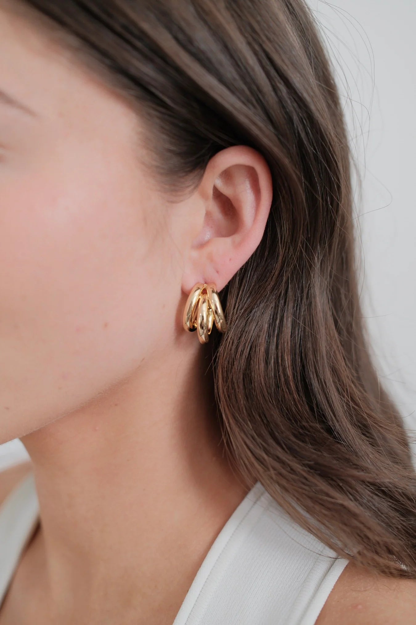 The Indie Hoop is a bold, sculptural take on a classic style, featuring a double-layered gold silhouette for maximum impact. Striking yet versatile, these hoops are perfect for adding a modern edge to both day and evening looks. Wear them solo as a statement or pair with minimalist studs for a chic, balanced stack.