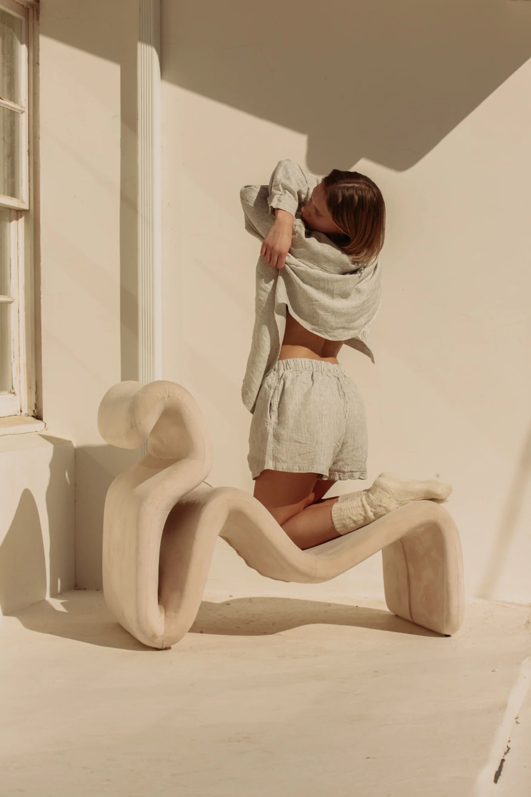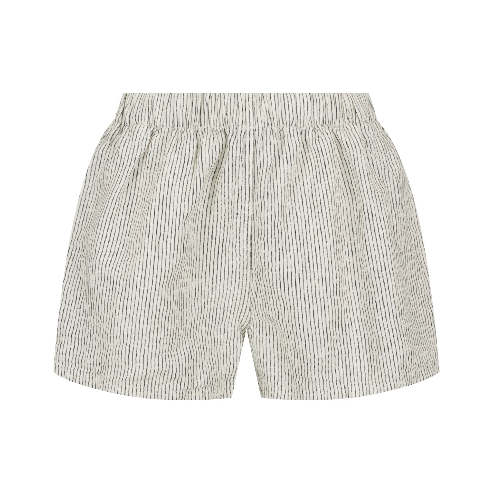 These stylish shorts will become your everyday comfort as they blur the distinction between inner and outer wear. Whether for lounging, lunch dates or paired with the matching Pinstripe Linen Shirt, these versatile linen shorts will complete your look. Featuring a double rolled hem and side seamed insert pockets with a thick elastic waistband and inner drawstring combination.