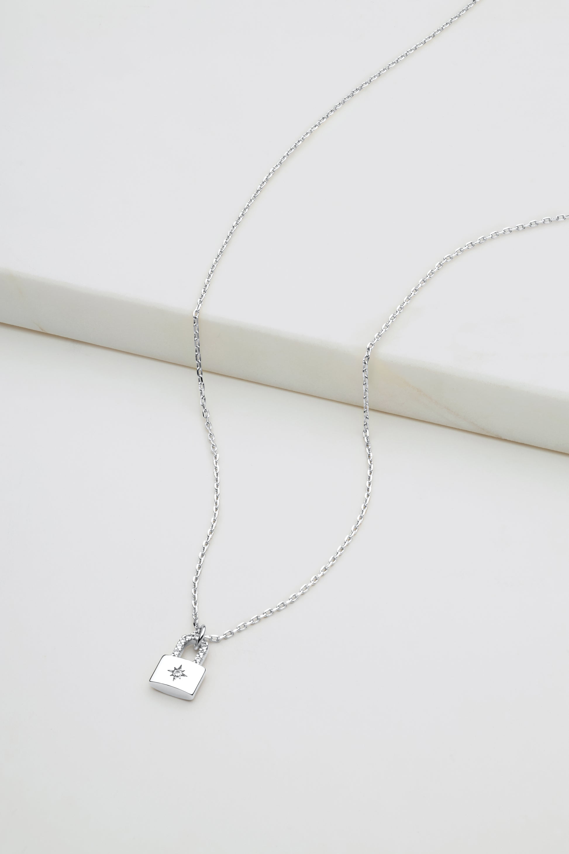 The Locket Mini Necklace features a sleek locket-shaped pendant adorned with a sparkling CZ crystal. Perfect for adding a touch of refined sparkle to your everyday look, this necklace is ideal for layering or wearing solo as a statement piece.