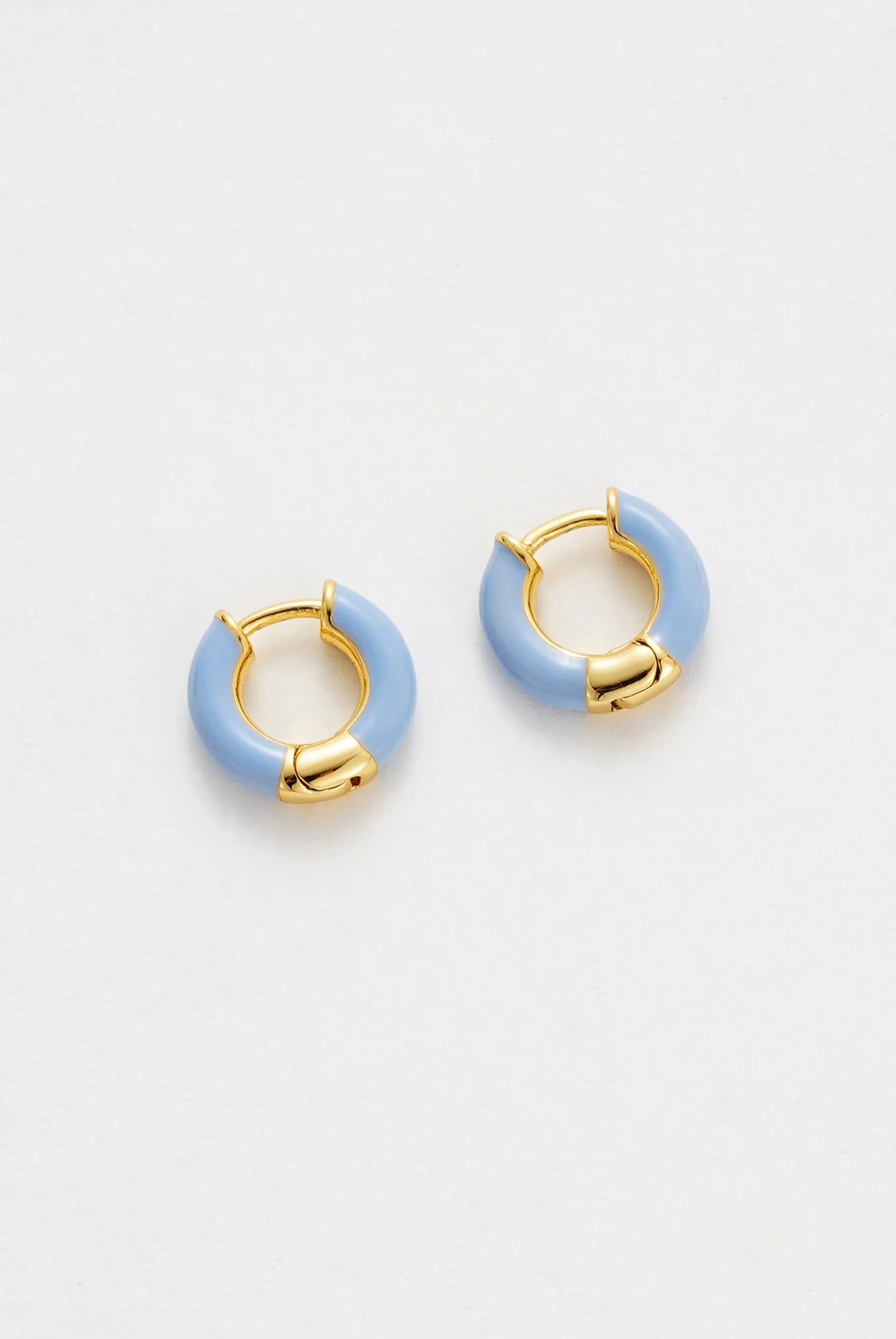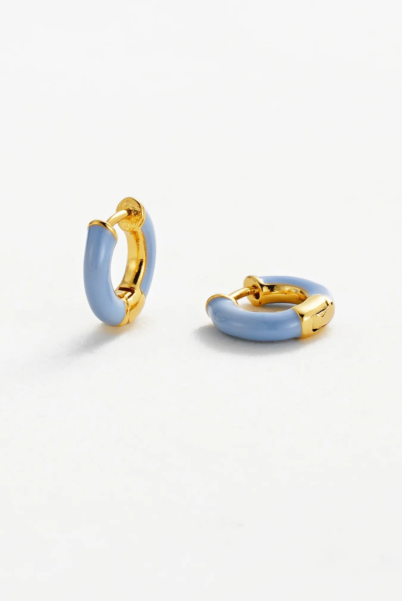 The Nova Huggie adds a subtle pop of colour to your everyday stack. Featuring a smooth blue enamel finish paired with gold accents, this petite hoop is lightweight, modern, and effortless. Perfect for wearing solo or layering with your favourite huggies.