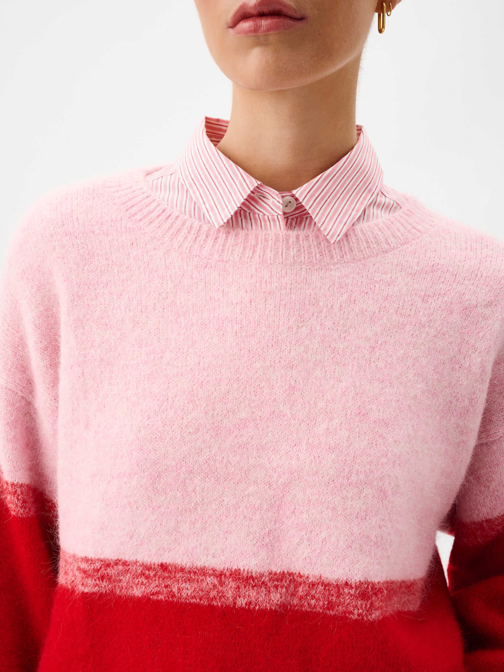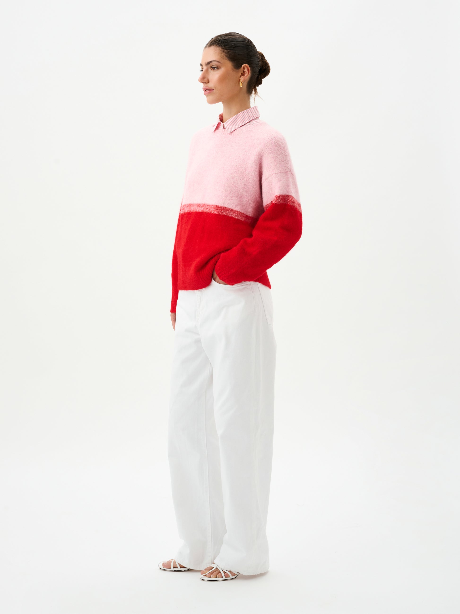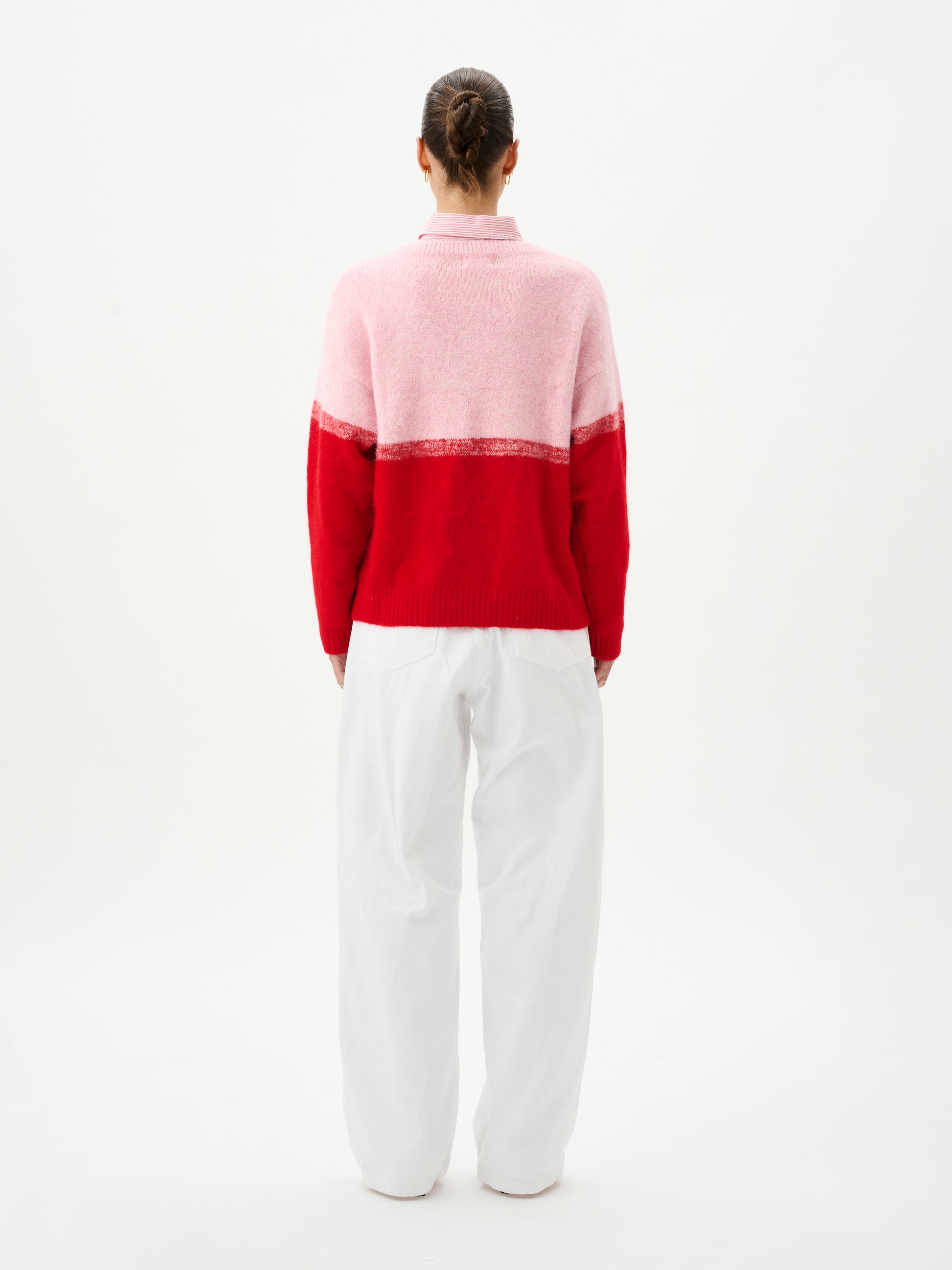Add a vibrant pop of colour to your transeasonal wardrobe with the Reggie Sweater in Rose Ombre. Made from a soft alpaca blend, this cozy style features a classic crew neckline and a relaxed silhouette, perfect for effortless layering and all-day comfort.