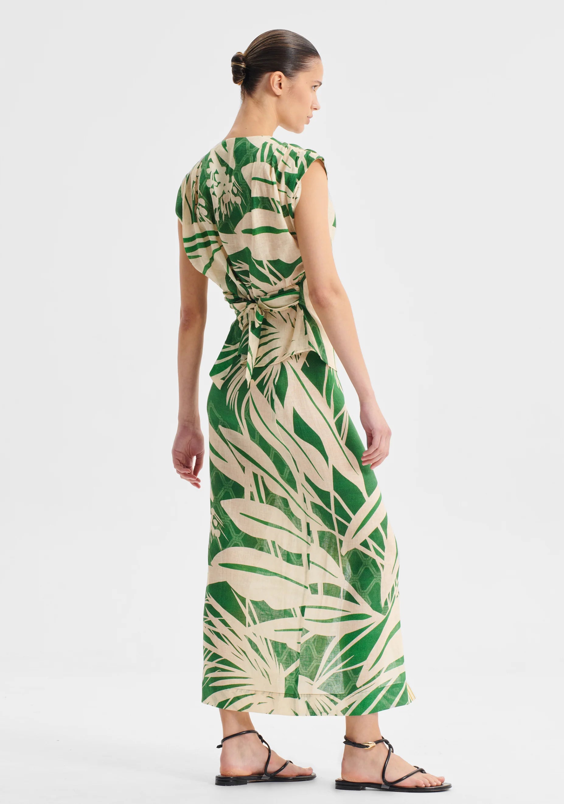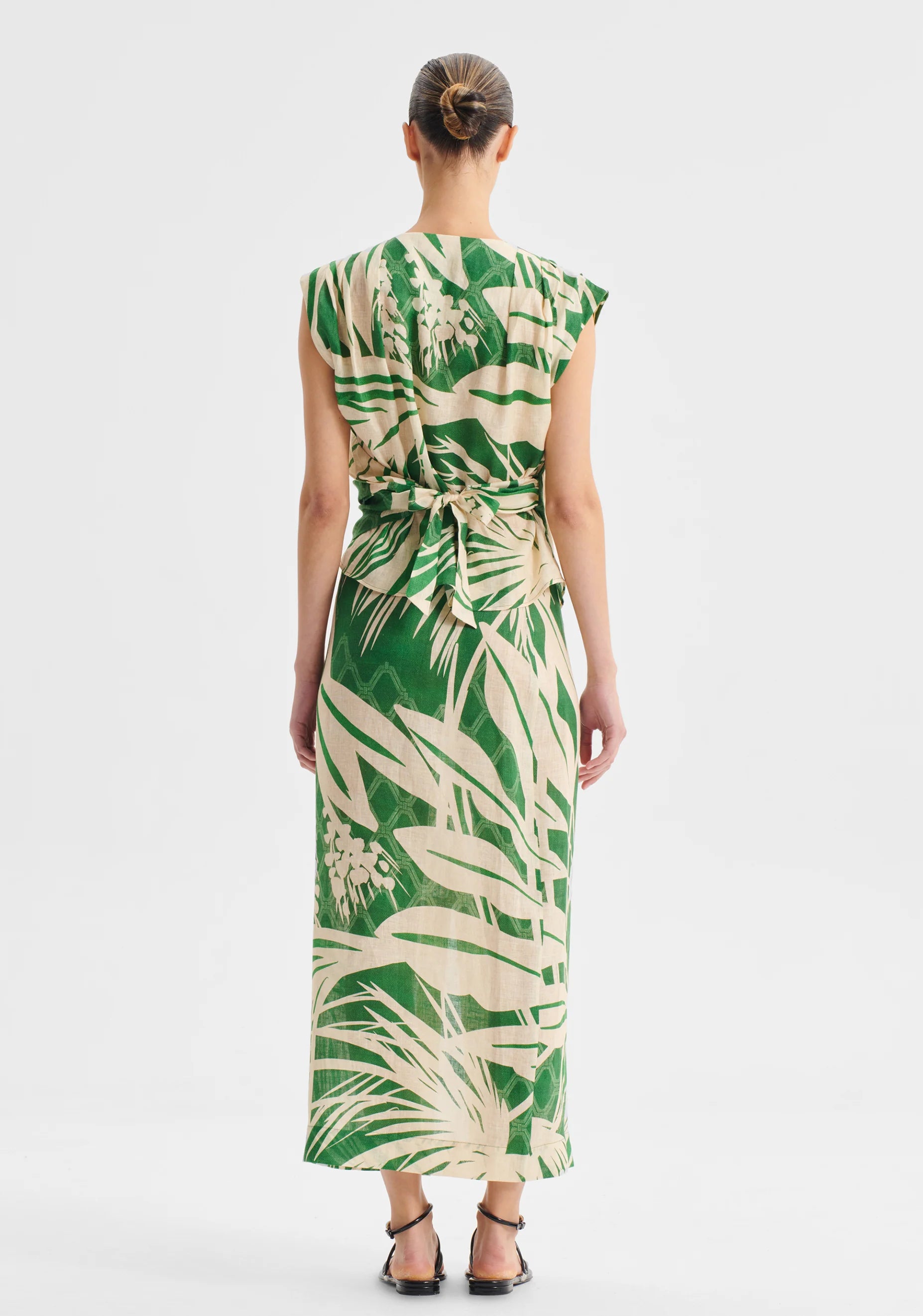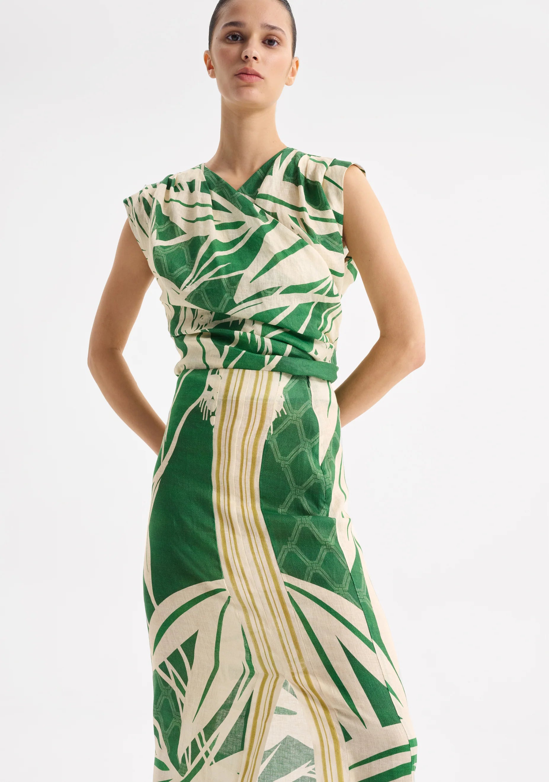 The Sorrento Skirt is cut from midweight linen with an exclusive Morrison print. A clean, straight midi profile and border detailing at the hem are balanced by a neat hip fit and front split for effortless sophistication.