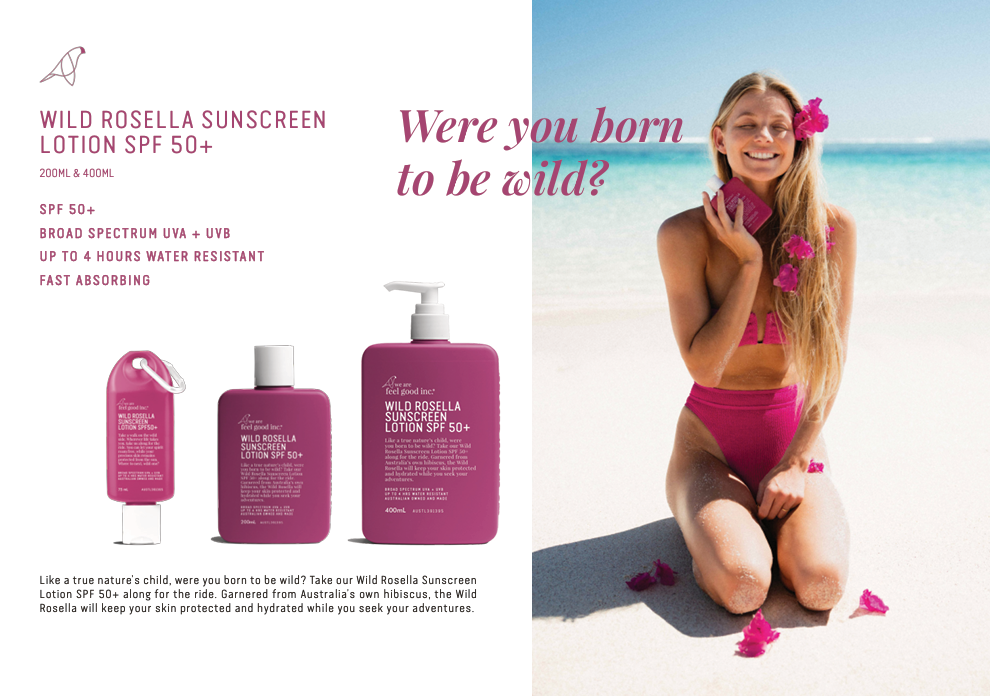 Take WAFG Wild Rosella Sunscreen SPF 50+ along for the ride. Garnered from Australia's own hibiscus, Wild Rosella will keep your skin protected and hydrated while you seek your adventures.